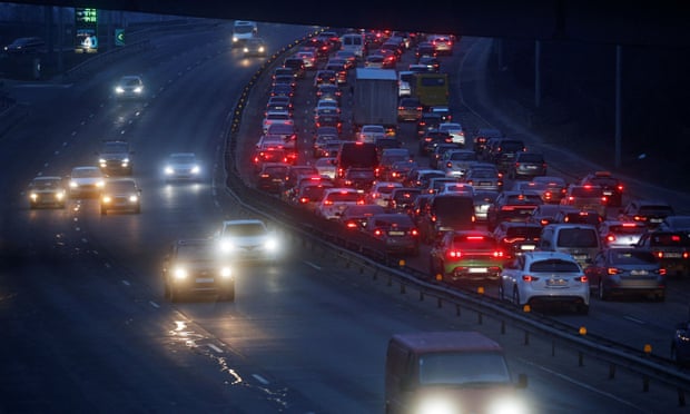 Autá opúšťajúce Kyjev vo štvrtok skoro ráno. (Foto: AP)