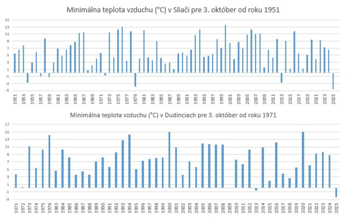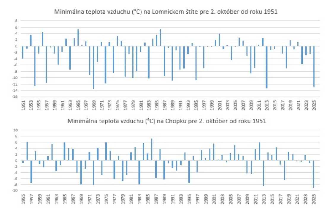Meteorológovia priniesli graf, podľa ktorého boli hodnoty minimálnej teploty vzduchu na Lomnickom štíte tretie a štvrté najnižšie na celom Slovensku „Naposledy boli na začiatku októbra podobne nízke hodnoty minimálnej teploty vzduchu zaznamenané u nás v roku 2013,“ spresnili meteorológovia.