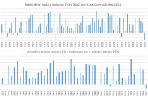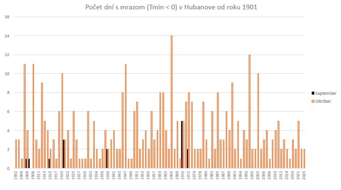 Začiatok októbra (piatok, 3.10.) väčšiu časť územia prekvapil prízemný mráz. „Na niektorých meteorologických staniciach boli v niektorom z uvádzaných dní zaznamenané rekordne nízke hodnoty minimálnej teploty vzduchu (napríklad Dudince, Sliač) a na viacerých meteorologických staniciach sa hodnoty tejto charakteristiky teploty vzduchu blížili k rekordne nízkym hodnotám v analyzovanom období, resp. v celom období prevádzky meteorologickej stanice,“ priblížil SHMÚ na svojom webovom sídle.