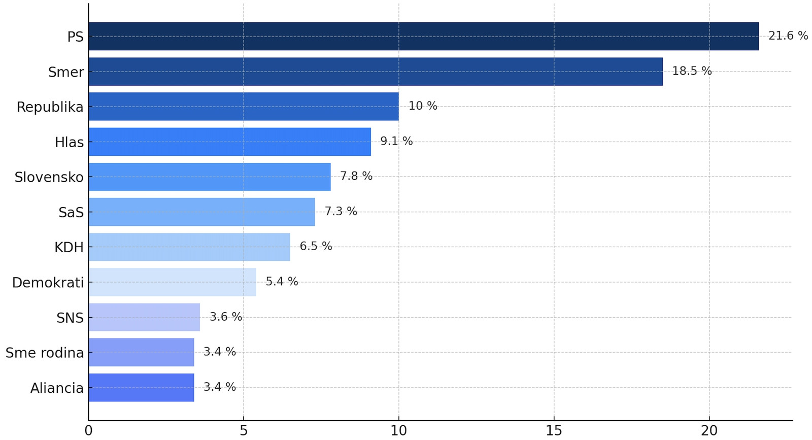 Ak by sa voľby konali dnes, opozičné strany PS, SaS, KDH a Demokrati by získali spolu 71 mandátov. V kombinácii s Hnutím Slovensko by tak mali v parlamente pohodlnú väčšinu – 85 poslancov.