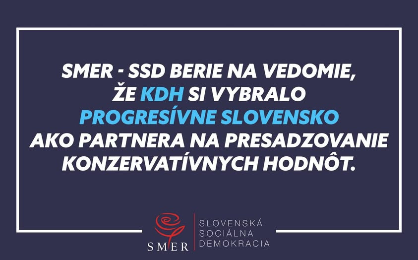 SMER-SSD zaznamenal, že KDH identifikovalo vo Progresívnom Slovensku partnera pre „spoločné presadzovanie konzervatívnych hodnôt“.