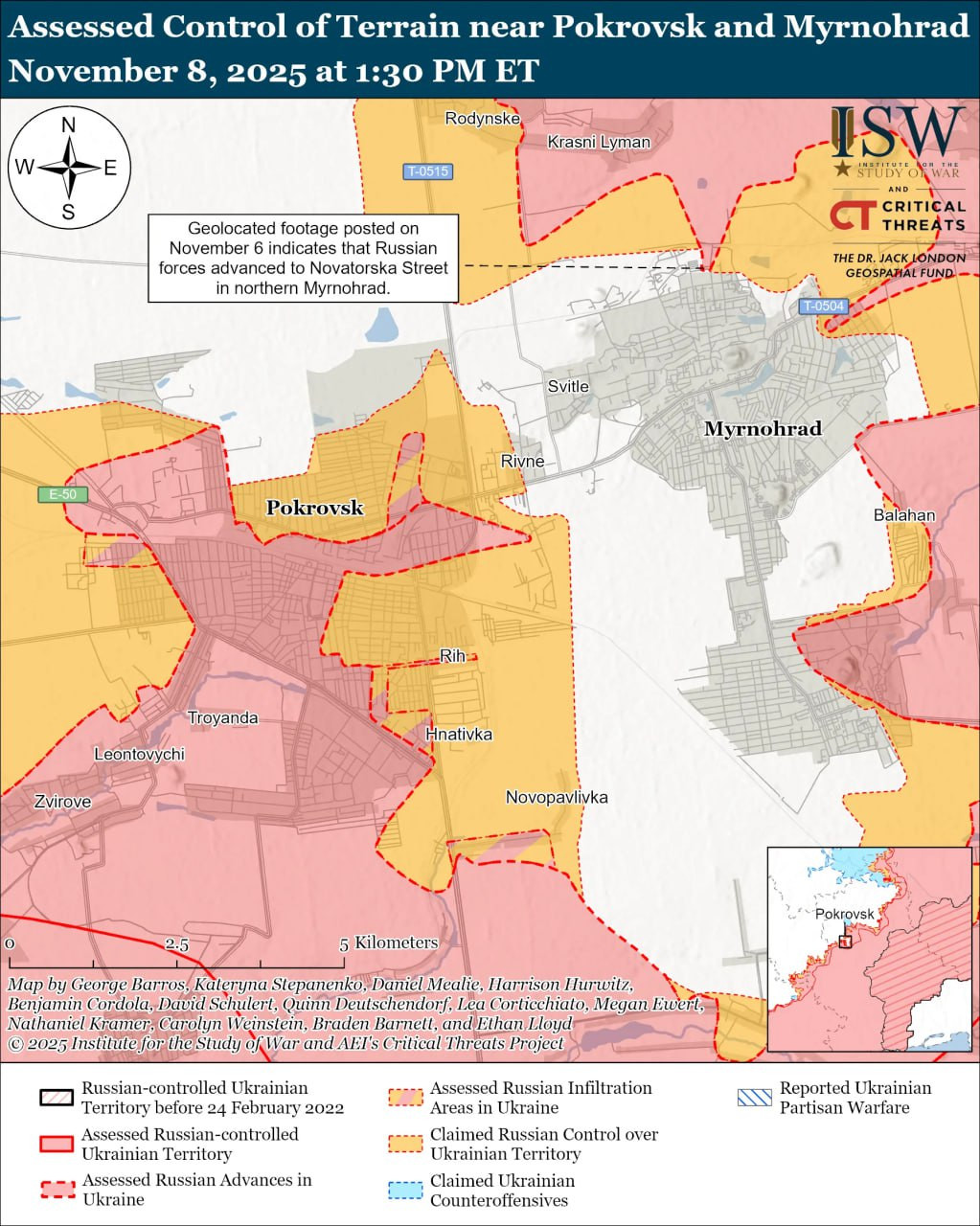 Vojenskí korešpondenti informujú o úplnom obkľúčení Pokrovska, čo znamená „zabuchnutie veka“ kotla. Objavujú sa aj informácie od zasvätených, podľa ktorých sa izolovaní ukrajinskí vojaci a dôstojníci už začínajú hromadne vzdávať.
