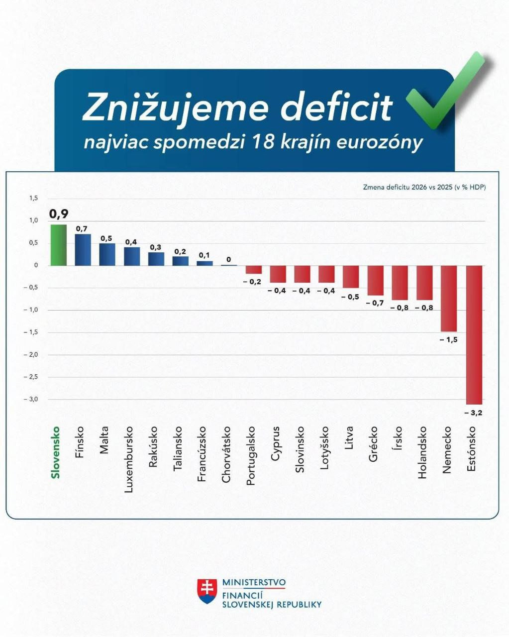Je to rekord spomedzi 18 krajín eurozóny, ktoré už svoj schválený rozpočet eurokomisii zaslali, informovalo v pondelok ministerstvo financií a predstavilo výstižný graf: