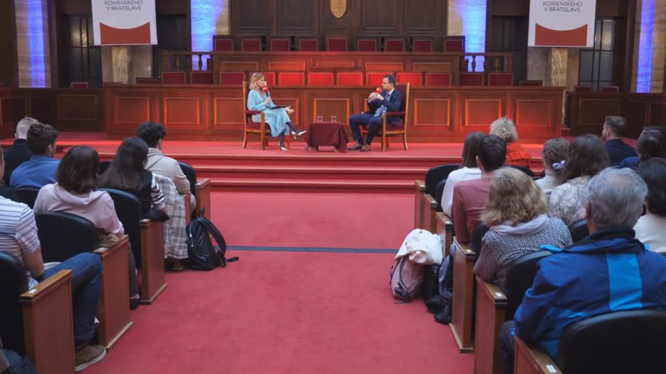 Len pár dní po tom, ako bola menovaná prezidentkina úradnícka vláda, si to už ako premiér namieril na akademickú pôdu. Diskusiu na Komenského univerzite nemoderoval nik iný, ako Zuzana Kovačič Hanzelová. To svedčí o fakte, že na akademickej pôde si robila reklamu súkromná spoločnosť – SME zastrešovalo diskusiu nie len mediálne, ale študent, ktorý sa zúčastnil diskusie, vyplnil formulár, z ktorého informácie boli poskytnuté novinám.