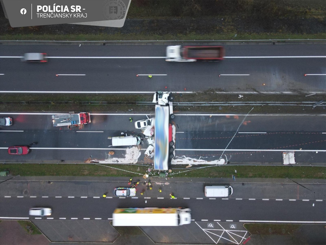 „Na mieste sú všetky záchranné zložky, žiadame vodičov o rešpektovanie pokynov polície,“ zdôraznilo Krajské riaditeľstvo Policajného zboru v Trenčíne na sociálnej sieti.