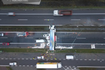 Na kilometri 141 diaľnice došlo k nehode jazdnej súpravy a troch ďalších vozidiel. Obchádzka je možná cez odpočívadlo Dubnica nad Váhom. V smere na Bratislavu je prejazdný jeden jazdný pruh. Predpokladané obmedzenie potrvá asi do 12.00 h.
