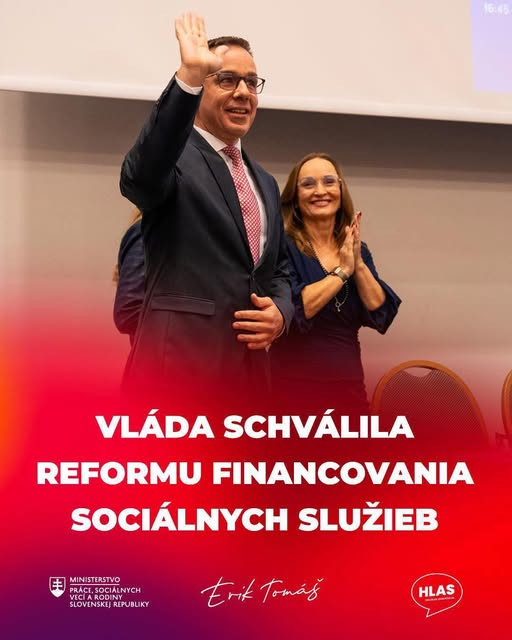 Minister práce, sociálnych vecí a rodiny Erik Tomáš (Hlas-SD) spoločne s predsedom vlády Robertom Ficom (Smer-SSD) v piatok (27. novembra) na tlačovej besede predstavili reformu sociálnych služieb, ktorú schválila vláda na svojom nedávnom zasadnutí. Toto je jedna z vlajkových lodí ministerstva práce, povedal premiér k tejto zložitej reforme, pričom verí, že tento (z hľadiska obsahu či prípravy) superzákon prejde cez NR SR do Vianoc.