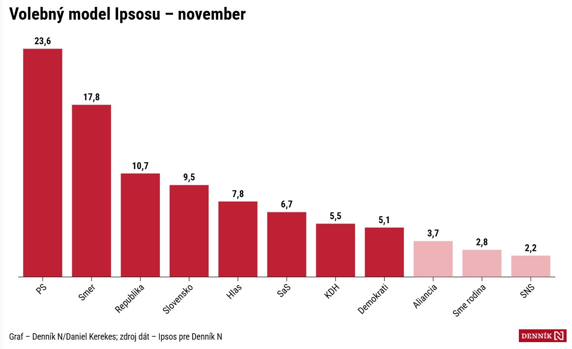 Aktuálny, takpovediac liberálny, prieskum agentúry Ipsos pre Denník N sa realizoval formou ONLINE dopytovania v dňoch 24. až 28. novembra 2025 na vzorke 1018 respondentov, čím sú vylúčení voliči bez prístupu k internetu.