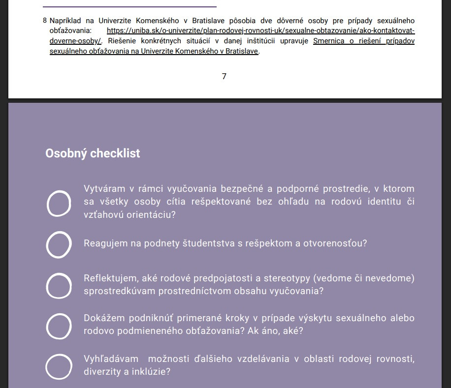 V septembri Filozofická fakulta Univerzity Komenského (UK) v Bratislave zverejnila na svojom webe dokument pod názvom Rodovo inkluzívne vzdelávanie na vysokých školách - Príručka pre pedagogický personál vysokých škôl.všimol si portál Postoj.sk.