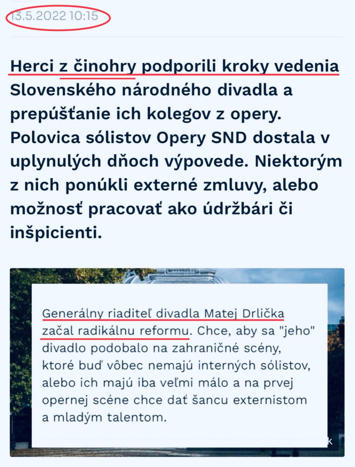 Prečo zrazu ten cirkus? Keď bol riaditeľom SND všetkými progresívnymi liberálmi milovaný Matej Drlička, prepúšťanie v našom prvom národnom stánku nechalo každého chladným. Dnes sa kvôli piatim hercom idú potrhať médiá, opozícia i internet. Čím to bude? Prečo sa vtedy prepustených spevákov nikto nezastal? Že by preto, lebo na tribúnach nečítali z papierikov?