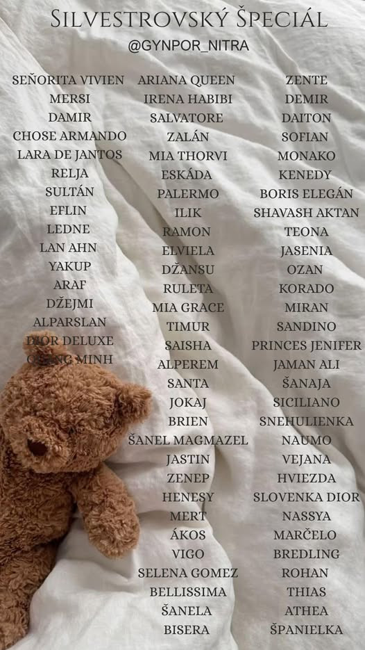 "Nakoľko naša novembrová Seňorita Vivien Vás zaujala, rozhodli sme sa pripraviť pre Vás silvestrovský špeciál, zozbierali sme nezvyčajné mená za posledné roky. Prajeme Vám príjemné čítanie. Zároveň Vám prajeme šťastný Nový rok, plný radosti, šťastia, smiechu a hlavne zdravia, ďakujeme každej jednej našej pacientke, ktorá sa nám zverila do rúk a v Novom roku sa snáď stretneme s ďaľšími," uviedla pôrodnica na sociálnej sieti a dodala sľúbený zoznam.