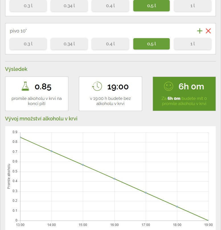 Možno bol pán zákonodarca na rodinnej oslave a musel si štrngnúť poldecákom vodky s troma oslávencami, ktoré zavŕšil pohárom 2 deci bieleho vína, vtedy je priebeh podobný: z takmer 1 promile po obede mal poobede ešte stále polovicu v krvi: