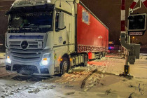 Vďaka pohotovej reakcii policajtov a bagristovi, ktorého si všimli v blízkosti priecestia, sa podarilo kamión stiahnuť mimo koľajiska bez zranení a bez škôd na majetku