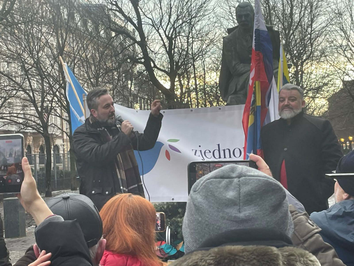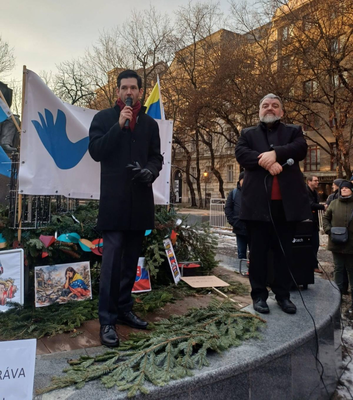 V sobotu, 17. januára sa v aj v Bratislave konalo zhromaždenie v rámci Globálneho akčného dňa solidarity s Venezuelou. Ľudia sa pri soche P. O. Hviezdoslava na rovnomennom námestí, pred ambasádou USA, schádzali už pred 15-tou hodinou. Bratislavské zhromaždenie organizovala iniciatíva Zjednotení za mier a vystúpilo na ňom niekoľko rečníkov. Okrem europoslancov za Smer Judity Laššákovej a Ľuboša Blahu aj Artur Bekmatov, predseda hnutia Socialisti.sk.