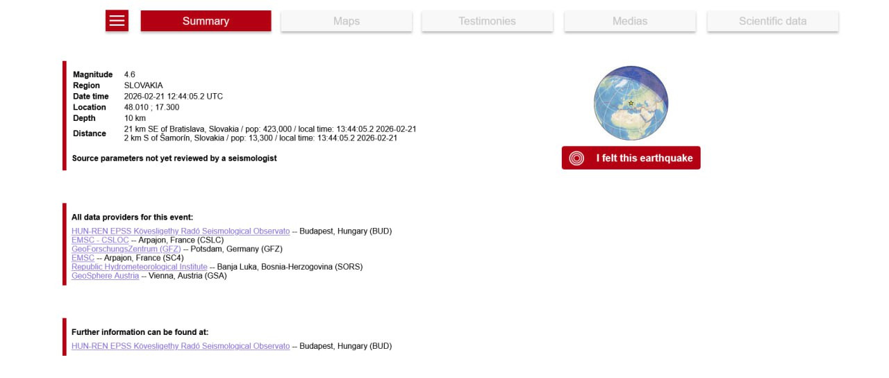 Iba 21 km od Bratislavy a 2 km od Šamorína nastalo pred pár minútami zemetrasenie s magnitútou 4,6 stupňa Richterovej stupnice.