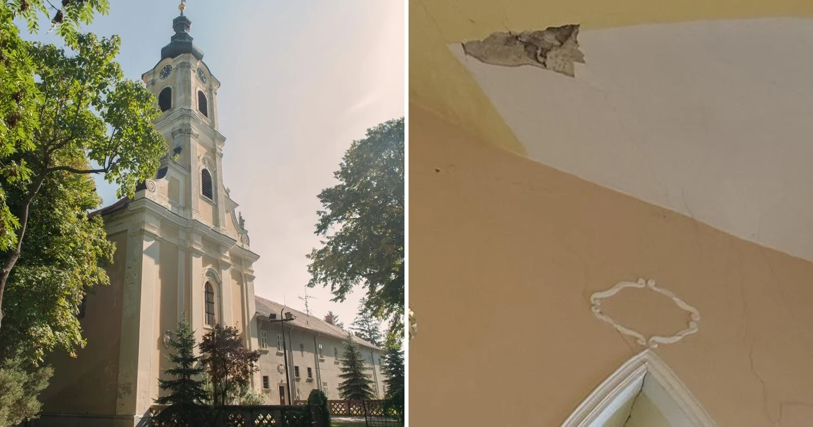 „Podľa miestneho farára Csabu Mikusa došlo v kostole k viacerým poškodeniam. Na viacerých miestach opadala omietka a na stenách sa objavili praskliny. Kusy omietky napadali aj do organu, ktorý patrí k najväčším vzácnostiam chrámu,“ priblížila TK KBS. Dodala, že z preventívnych dôvodov sa v nedeľu (22. 2.) svätá omša nekonala v kostole, ale na náhradnom mieste.