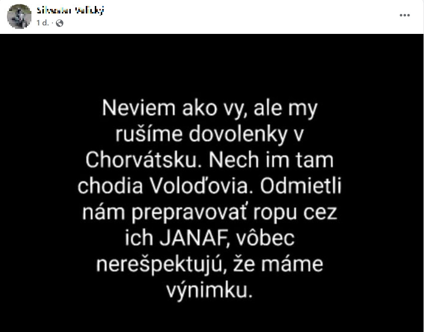 Príspevok o zrušení dovolenky na Jadrane sa objavil aj v jednej zo skupín venovaných dovolenkám v Chorvátsku. „Neviem ako vy, ale my rušíme dovolenku v Chorvátsku. Odmietli nám prepravovať ropu cez ich JANAF, vôbec nerešpektujú, že máme výnimku,“ napísal autor statusu. Väčšiu podporu však nezískal.