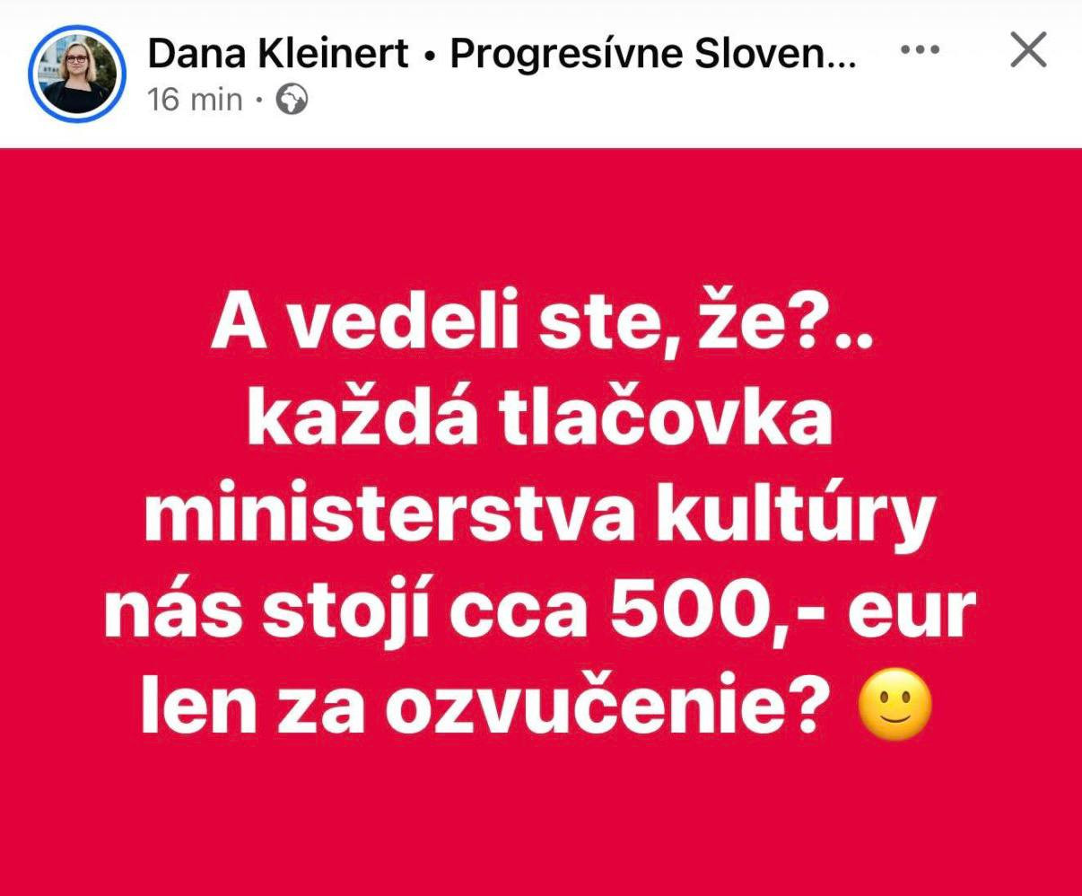 Aj poslankyňa Dana Kleinert dnes útočí na Fond na podporu umenia. V televíznej diskusii však SNS konfrontovala progresívnu poslankyňa so zistením, že podľa verejného Centrálneho registra zmlúv (CRZ) v období rokov 2016 až 2024 jej občianske združenie opakovane uzavrelo dotačné zmluvy s FPU, pričom súčet zverejnených súm vychádza približne na 348 150 eur. Teda nejde o jednorazový úspech, ale o dlhodobé a opakované čerpanie verejných kultúrnych peňazí.