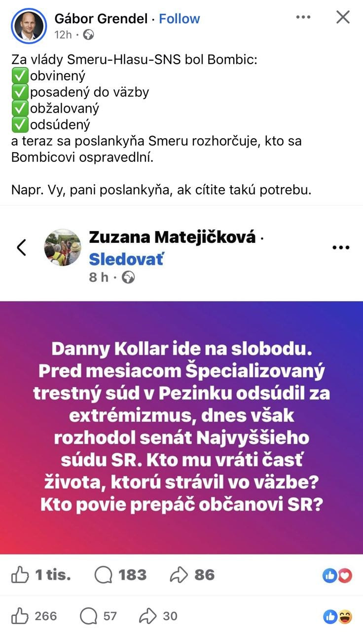 Jeho náhle veľkonočné prepustenie zasiahlo všetky politické strany, prinieslo šokujúce komentáre, Matovičovho poslanca Gábora Grendela nevynímajúc: