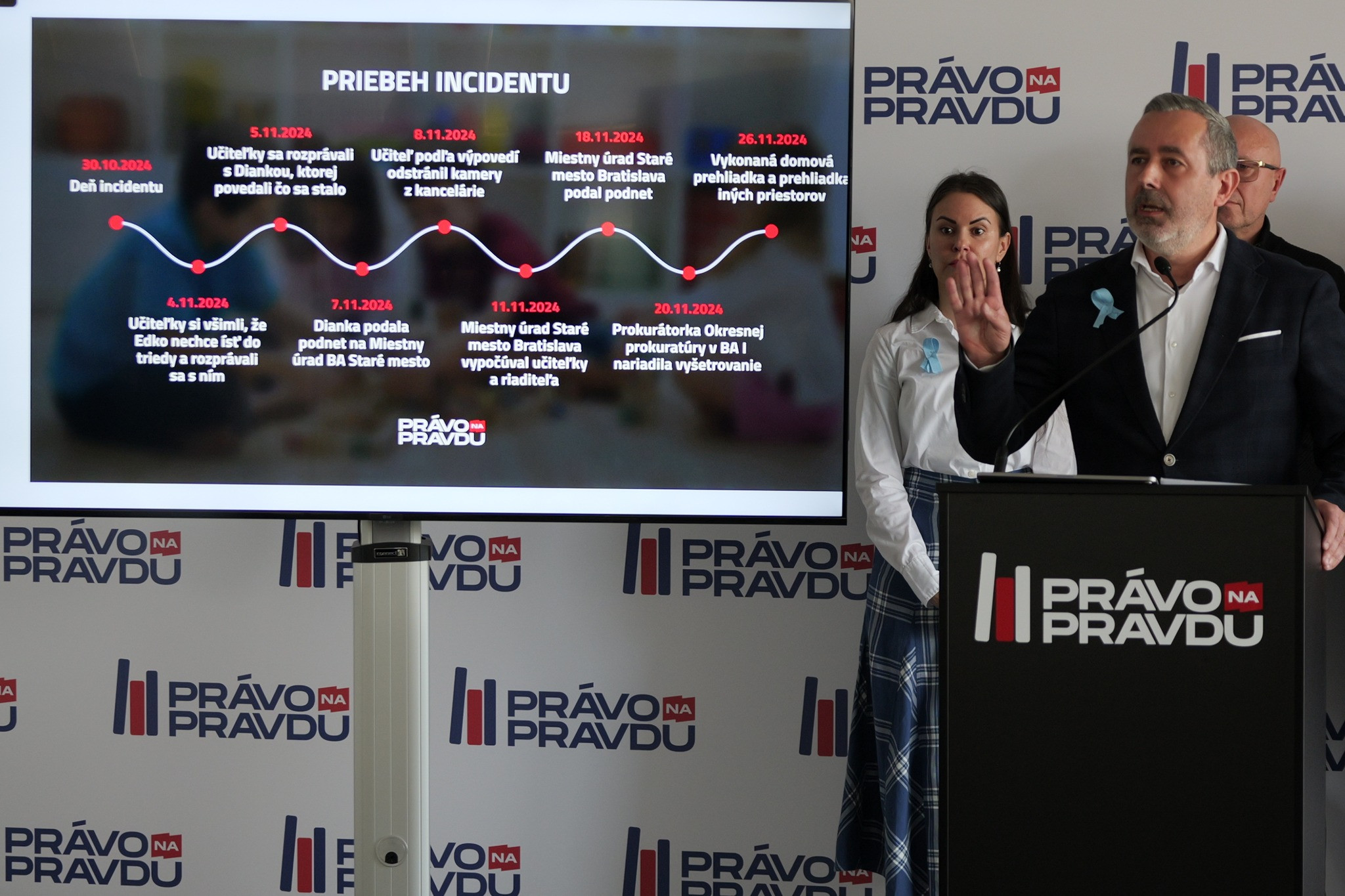 Strana Právo na pravdu priniesla tlačovú konferenciu s témou, ktorá sa na besedách politických strán vidí veľmi ojedinele. Spolu s matkou malého chlapca priniesla vážne obvinenia o riaditeľovi škôlky v bratislavskom Starom Meste. Čo v škôlke dialo?