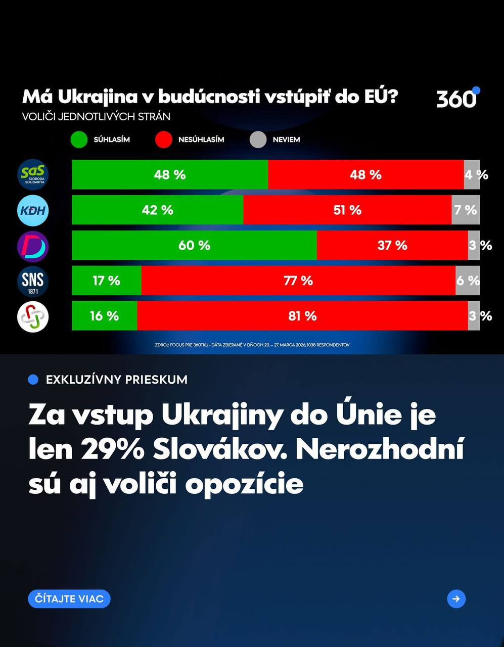 Je chválitebné, že len sedem percent opýtaných odpovedať nevedelo. Ostatní mali striktne vyhranený názor. Až 64 percent respondentov so vstupom Ukrajiny do EÚ nesúhlasí. A to nielen v roku 2027, alebo v inom urýchlenom termíne!