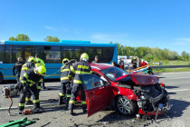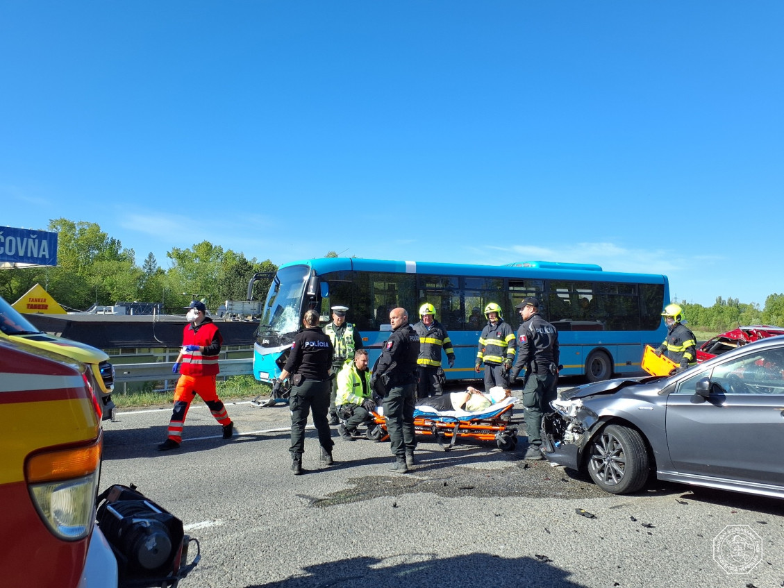Podľa Hasičského a záchranného zboru malo k nehode dôjsť v pondelok krátko pred 9.00 h. „Zasahujúci hasiči pomocou hydraulického vyslobodzovacieho náradia vyslobodili z jedného z vozidiel dve zakliesnené osoby. Obe osoby utrpeli zranenia a spolu s ďalšími zranenými boli odovzdaní do opatery zdravotníkov,“ ozrejmili.