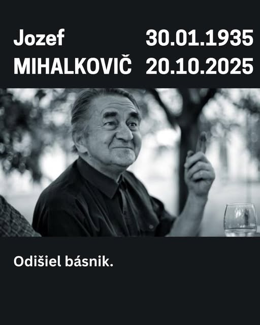 Vo veku 90 rokov zomrel v pondelok v Modre pri Bratislave slovenský básnik a prekladateľ Jozef Mihalkovič. Úmrtie potvrdila pre TASR autorova nevesta Veronika Šikulová. „Dnes zomrel veľký slovenský básnik, člen Trnavskej skupiny Jozef Mihalkovič,“ oznámila spisovateľka na sociálnej sieti.